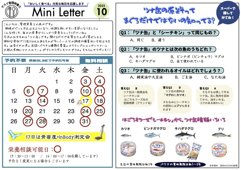 管理栄養士 今月のスケジュール&Mini Letter